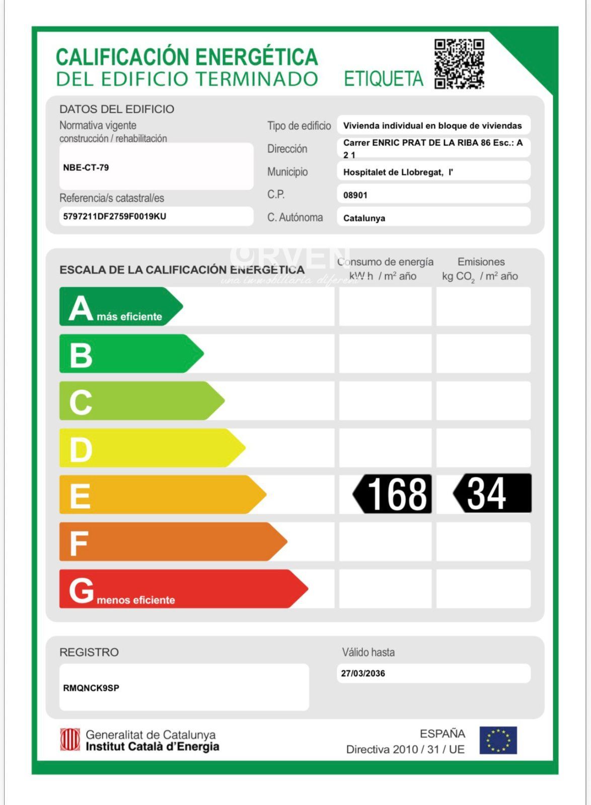 Calificación Energética (Pendiente certificar) VER