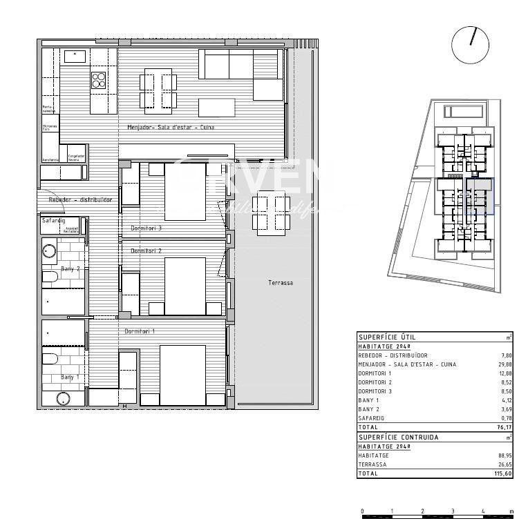 Si desea vivir en un entorno privilegiado cerca de todos los servicios no deje escapar esta oportunidad venga a visitar esta nueva construcción de un edificio plurifamiliar compuesto por 24 viviendas situado en la localidad de Cunit. .Este bloque de nueva construcción ha sido diseñado con un enfoque en la elegancia moderna. Cada piso ha sido meticulosamente diseñado para maximizar el espacio y la luz, creando un ambiente acogedor y atractivo y con los más altos estándares de calidad. Desde los acabados interiores hasta los electrodomésticos de alta gama, como cada pequeño detalle, garantizando la máxima satisfacción para del propietario..Con una superficie construida total de 115,60 m2 de vivienda, y 88,95 m2 construidos interior de vivienda se encuentra distribuidos 3 amplias habitaciones (1 de ellas suitte), salón comedor con cocina americana de 31,43 m2 totalmente equipada con todos los electrodomésticos, 2 baños completos, 1 lavadero con los electrodomésticos integrados de lavadora y secadora marca BALAY, recibidor, terraza de 26,65 m2, suelos porcelanamicos en toda la vivienda, carpintería exterior de aluminio de color gris claro de perfil eficiente y con rotura de puente térmico, carpintería interior con puertas correderas lacadas en blanco..Además, contamos con zona comunitaria con piscina, ascensor y plazas de parking opcionales. .El entorno y municipio:.Cunit se encuentra situado en la comarca del Bajo Penedés y en la provincia de Tarragona aunque está incluido en la tercera corona de la región urbana de Barcelona. Limita con Segur de Calafell (localidad del municipio de Calafell), de la misma comarca, así como con Cubellas, en la comarca del Garraf, y Castellet y Gornal, en la comarca del Alto Penedés, ambos de la provincia de Barcelona..Su paisaje es típicamente mediterráneo, desde los 2,5 km de playas de arena fina, protegidas por los espigones que le proporciona sus formas semicirculares características, pasando por las planicies agrícolas (denominadas Prats de Cunit i Plana del Castell) hasta las sierras del centro (Sierra de Sant Antoni) y norte del municipio, siendo parte de las últimas montañas de la sierra litoral catalana...